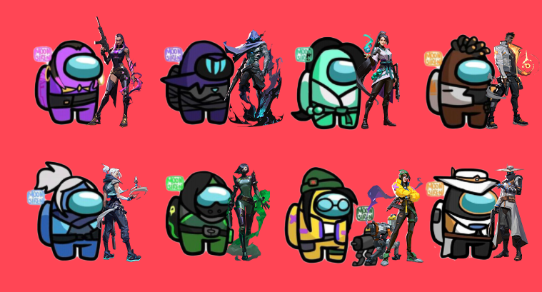 Entre as skins apresentadas pelo artista estão Cypher, Viper, Reyna, Phoenix, Omen, Jett, Killjoy e Sage. As ilustrações são básicas, mas mostram exatamente como seriam se os personagens de Valorant quisessem ingressar nas naves de Among Us.