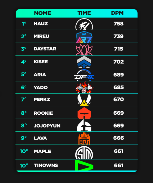 O mid laner Hauz, um dos destaques do time nessa etapa, alcançou uma grande marca em seus status. Ele é o jogador com mais DPM (Dano por Minuto) na sua posição considerando todas as regiões major e minors.