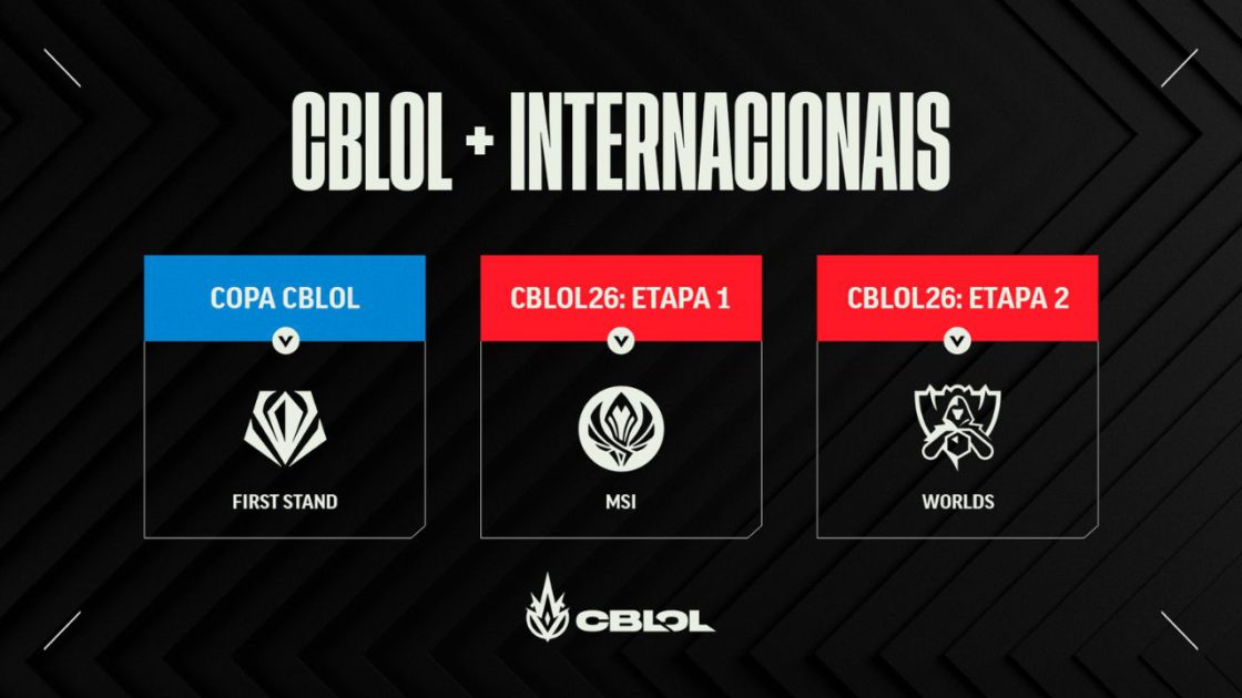 Já no CBLOL, a primeira etapa concederá a vaga do MSI 2026 para o grande campeão. O vencedor do segundo split será o responsável por representar o Brasil no Worlds 2026, o mundial de League of Legends.