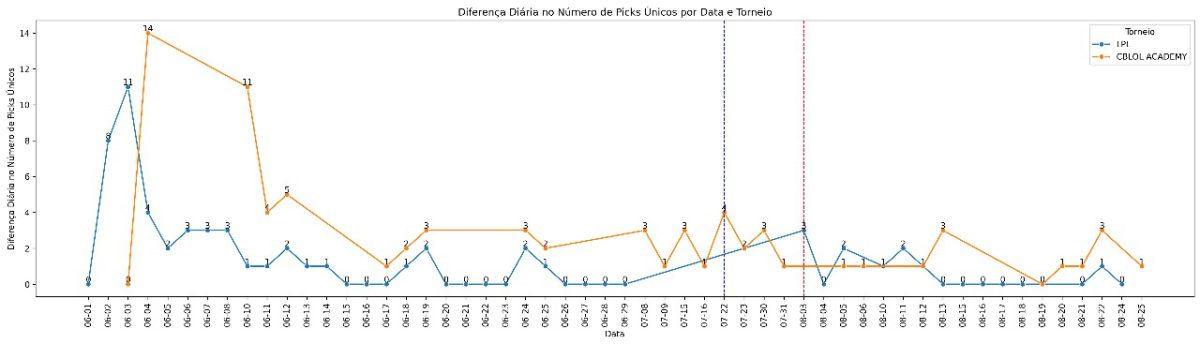 Quando observamos a LPL. A sua fase de Fearless Draft atingiu 88 picks únicos. Enquanto até hoje o número total de campeões selecionados foi de 98. Se compararmos os dois incrementos, o CBLOL Academy conseguiu aumentar em 18, enquanto a LPL apenas 10 campeões.