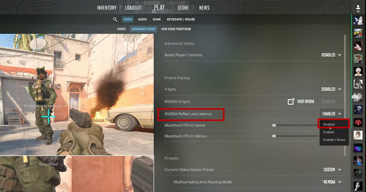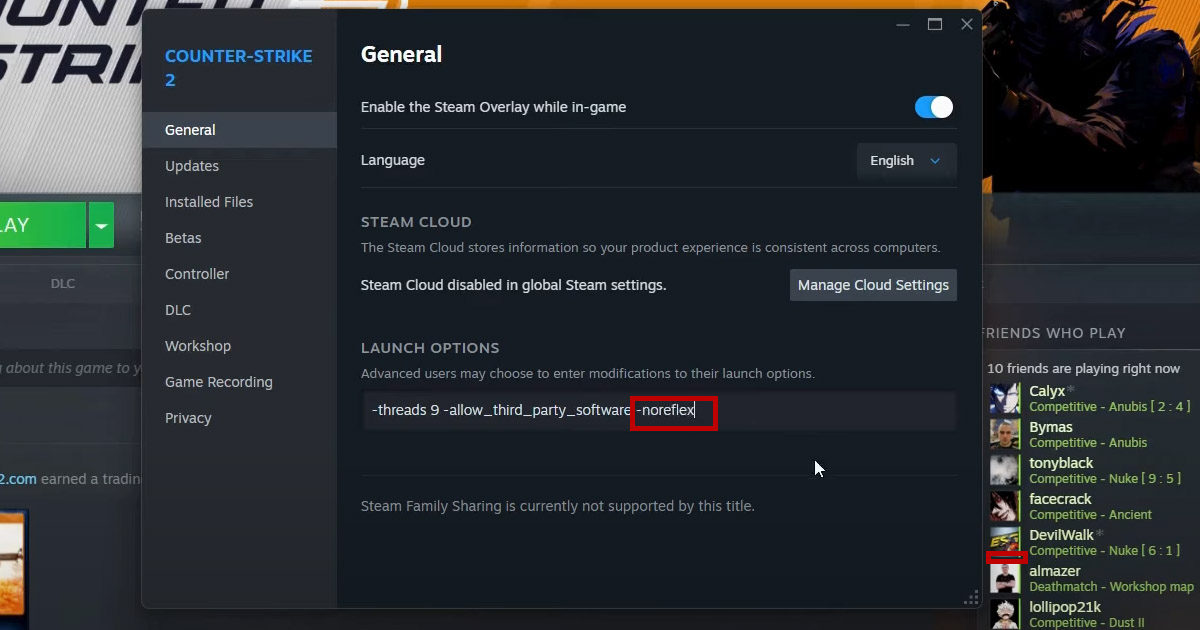 Adicione o comando -no_reflex nas opções de inicialização do CS2