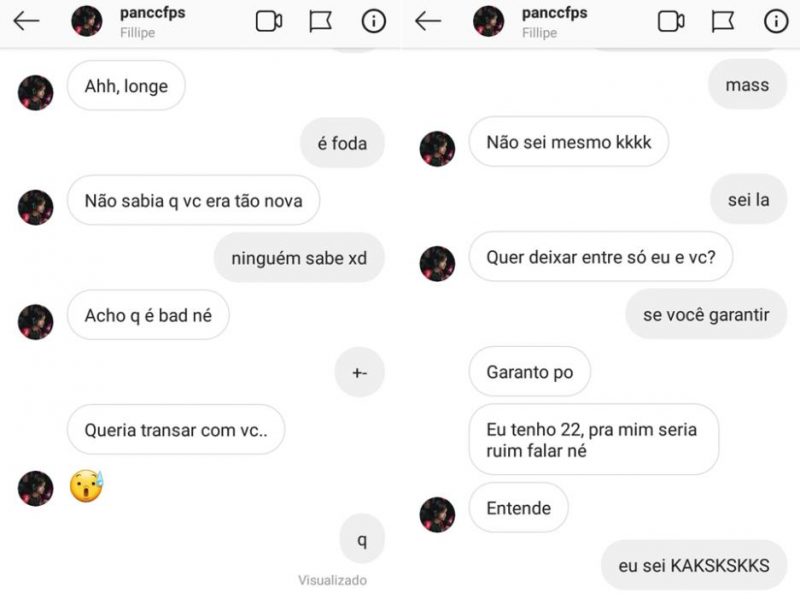 Não preciso falar muito nos prints, pois eles já são auto explicativos. Fora isso, recebi mais relatos de que isso já aconteceu com outras garotas menores de idade, fora coisas que rolaram com pessoas comprometidas, enfim, não irei mais afundo.