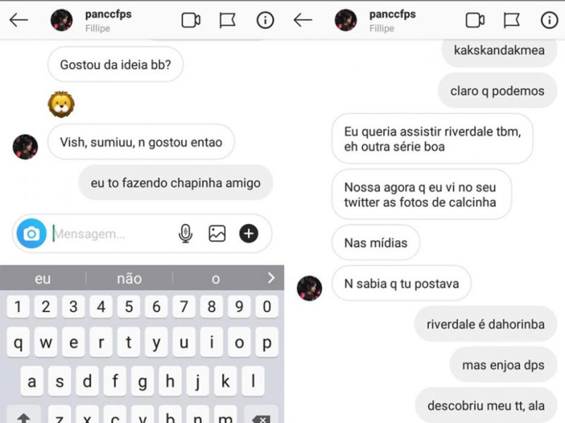 A jovem não quis entrar em detalhes sobre o que aconteceu com outras garotas, mas disso que “o apelido dele é cuequinha, então dá para entender que ele mandava foto só de cueca para outras garotas. Uma das que falou comigo, inclusive, é comprometida”, concluiu.
