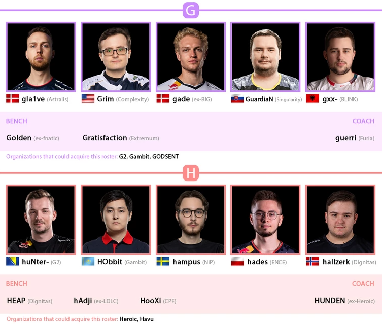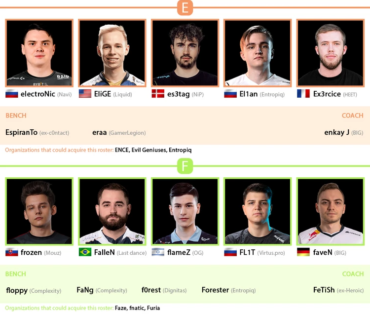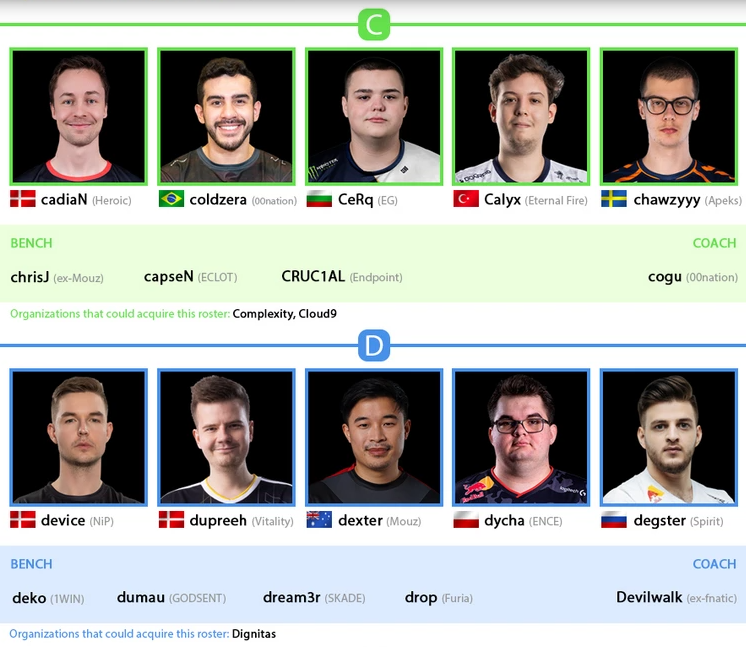O torcedor conseguiu montar 26 times utilizando todas as letras do alfabeto. A dinâmica acabou criando equipes bastante competitivas, como o quinteto formado por atletas com nicks que se iniciam com a letra “A”: apEX (Vitaity), arT (FURIA), Aleksib (OG), AmaNEk (G2) e Ax1Le (Gambit), ou os que começam com a letra “K”: k0nfig (Astralis), KSCERATO (FURIA), karrigan (FaZe), KRIMZ (Fnatic) e Krad (Entropiq).