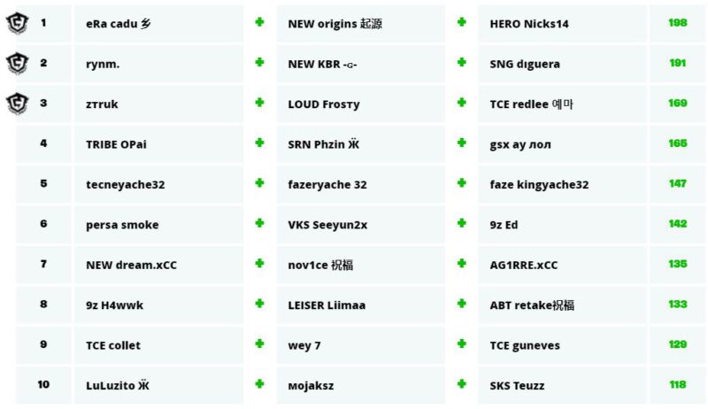 rynm, KBR e diguera ficaram na segunda colocação na tabela geral, enquanto redlee, ztruk e Frosty fecharam o top 3 dos classificados diretos para as finais da FNCS.