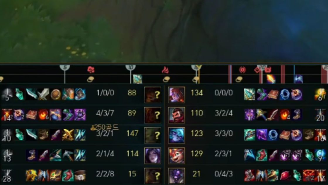 Apesar do jogador não acertar tanto o Gnar, ele garante a pressão de rota de forma dominante. Aos 15 minutos, o TheShy já tinha uma vantagem de 46 de farm, o que já é bem mais que um abate, fora a pressão que ele dá para o seu time e em grande parte este é o segredo da campeã: pressionar e escalar.