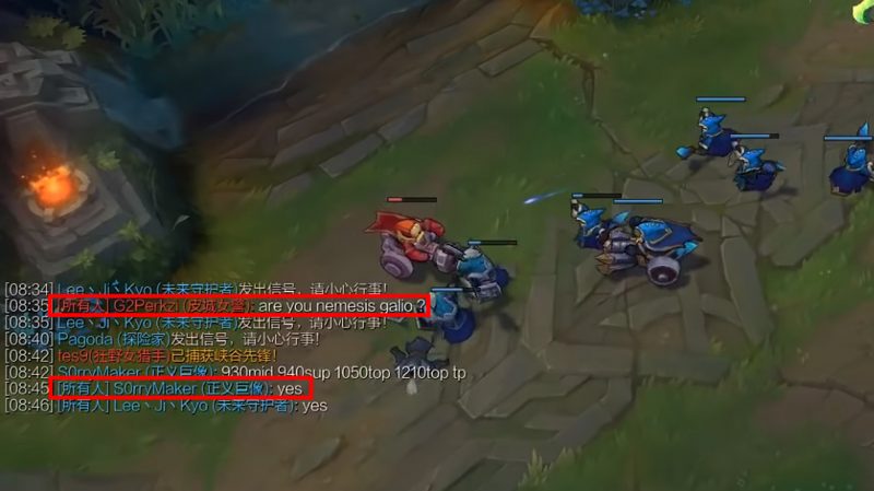 O atirador europeu perguntou se ele era o “Galio do Nemesis”, fazendo referência à partida que Nemesis jogou de Galio nas quartas de final e não foi nada bem. Você pode ver o vídeo completo deste jogo (legendado em inglês) aqui.