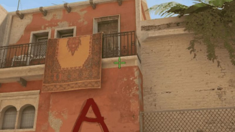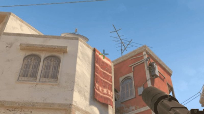 Veja o tapete no alto do prédio, posicione a mira na parte superior e no meio do objeto e pule usando o jumpthrow.