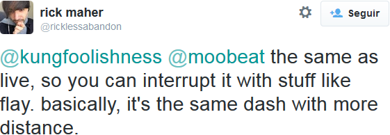 “Continua como no live, você pode interromper o pulo com o esfolar. Basicamente, é o mesmo pulo, com mais distancia”