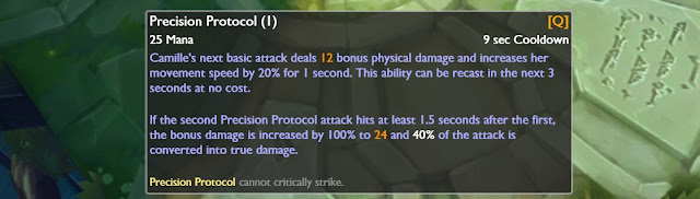 - Protocolo de Precisão(Q) – Segundo o dano verdadeiro do segundo hit diminuiu para 40-100% (1-16) de 55-100% (1-16)