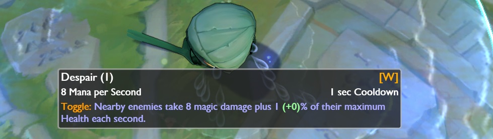 - Despair (W) dano alterado para 1/1.5/2/2.5/3% da vida máxima dos inimigos de 1.5/1.8/2.1/2.4/2.7%