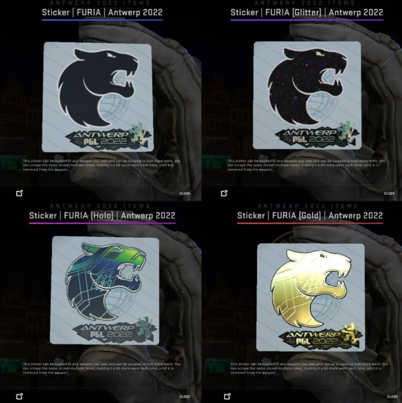 FURIA, Imperial e MIBR, equipes brasileiras que disputarão o PGL Major Antwerp 2022, receberam adesivos personalizados. Confira: