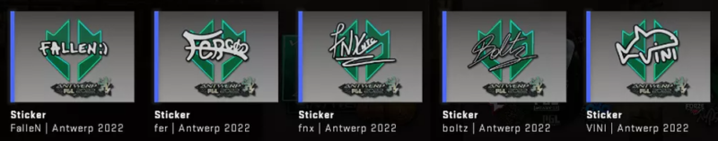 Diferentemente do último mundial, todos os jogadores que competirão no PGL Major Antwerp 2022 terão seus adesivos de autógrafo dentro do jogo. No PGL Major Stockholm 2021, apenas os atletas que alcançaram o Top 8 do torneio receberam adesivos com sua assinatura.