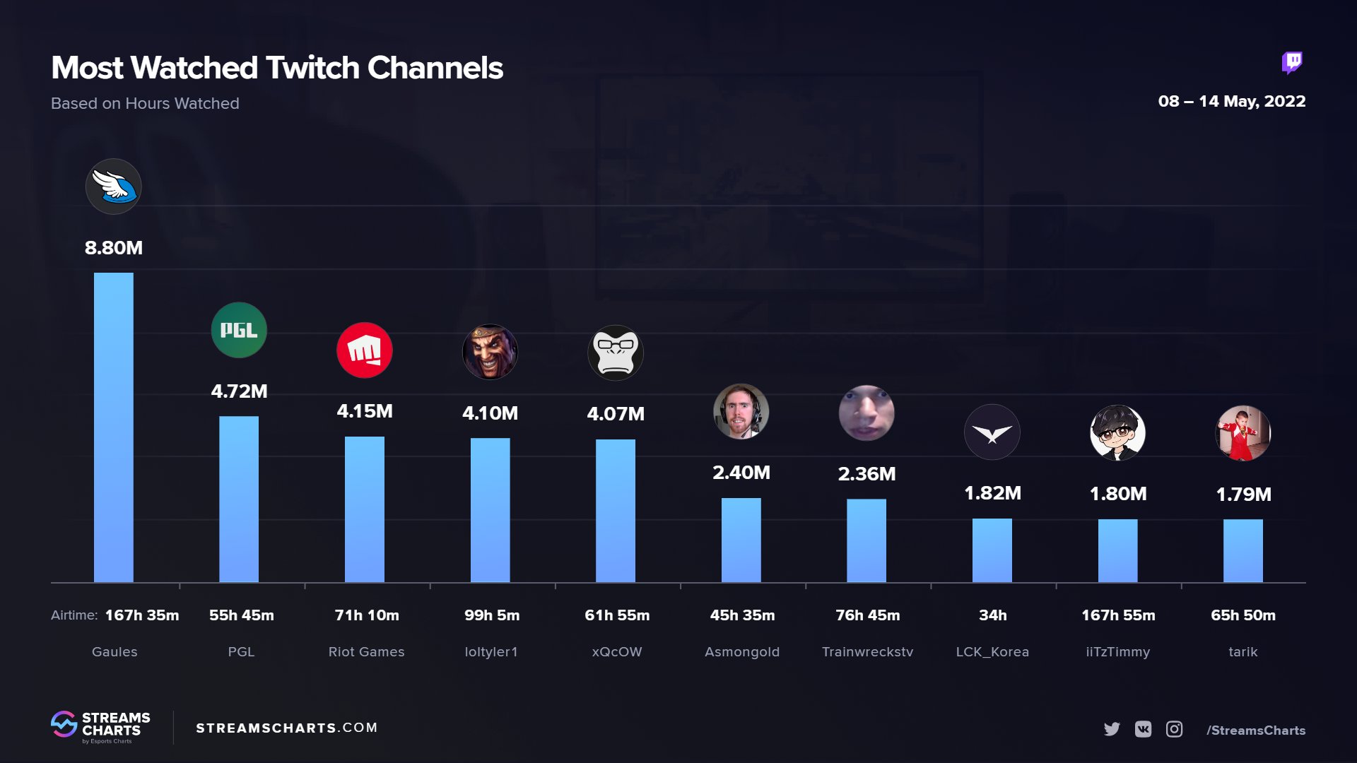 O streamer também vem conseguido uma audiência maior que a própria PGL, sendo o canal mais visto nos RMRs (qualificatórias) e também o mais assistido durante a fase Challenger Stage, com 5,4 milhões de horas, quase 2 milhões a mais que o segundo colocado, a própria PGL.