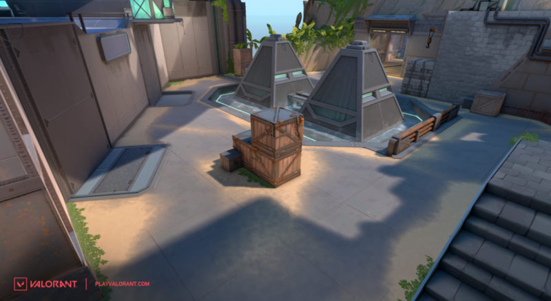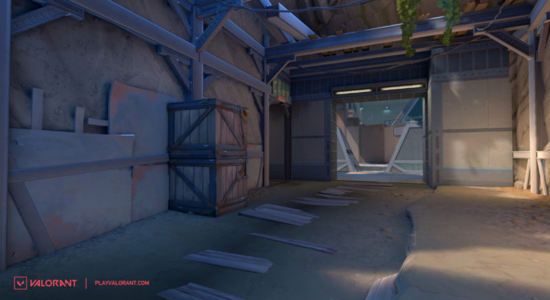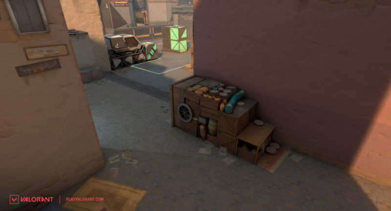 - Cobertura para o pilar adicionada ao Ponto B, fundo do ponto bloqueado por uma nova parede e pilha de caixas adicionada à Parede B.