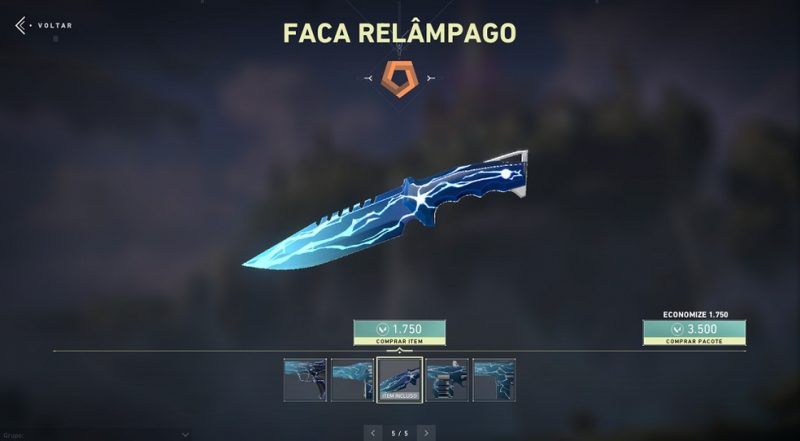 O pacote completo já está disponível na loja e pode ser adquirido por 3.500 Valorant Points. Diferentemente da maioria das coleções adicionadas ao jogo, a “Relâmpago” não possui cosméticos adicionais como chaveiros, cartas e efeitos especiais, além de suas skins não serem personalizáveis.
