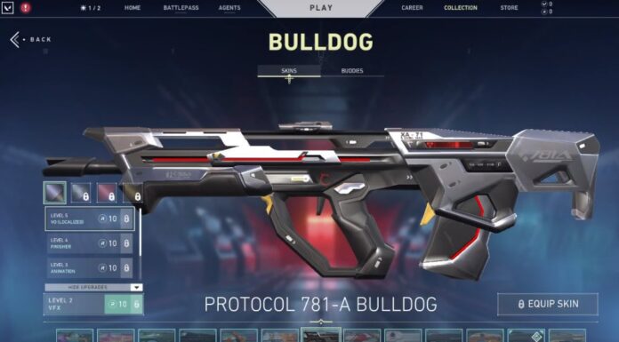 Nesta quinta-feira (6), a Riot Games revelou através de suas redes sociais a nova coleção de skins de VALORANT. Trata-se da linha PROTOCOLO_781-A, que estará disponível na próxima sexta-feira (7) e contará com cosméticos de Phantom, Sheriff, Spectre, Bulldog e faca.