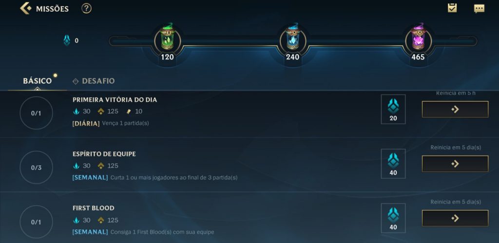 Completá-las também dá pontos para as conquistas semanais, que podem ser de três níveis diferentes, e ao recebê-los, você ganha Ciscos Azuis, Moedas Poro e experiência. Esses Baús Semanais estão disponíveis na mesma aba de missões, e só são liberados para a compra depois do nível 10.