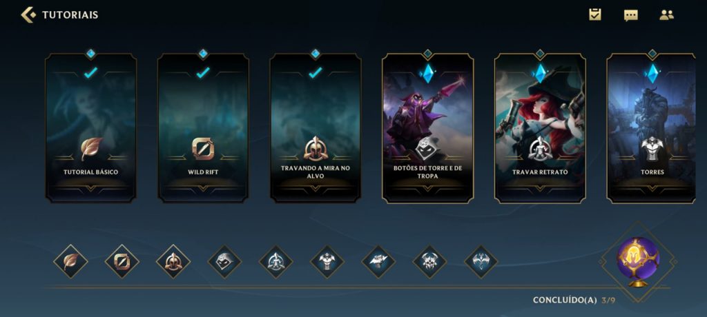 Assim que você instala o Wild Rift o próprio jogo já te direciona para alguns tutoriais, mas o que muitos não sabem é que existem 9 tutoriais diferentes, e a recompensa para completá-los é justamente os Ciscos Azuis, então mesmo que você já tenha aprendido sobre alguma mecânica que é explicada nos treinos, vá lá e complete todos eles!