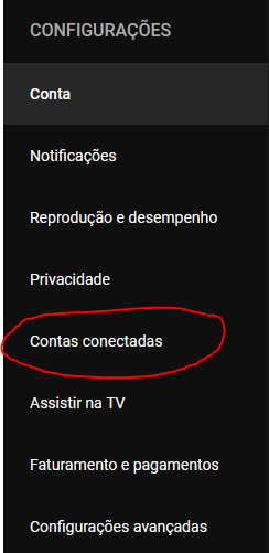 Assim que vc estiver logado, olhe para o lado esquerdo da sua tela e você encontrará uma barra com diversas opções (se ela não estiver lá, clique nos três tracinhos que estão no lado esquerdo do logo do site) e role até o final, até que “Configurações” apareça. Clicando na engrenagem, aparecerão algumas informações sobre sua conta, mas você continuará no lado esquerdo e clicará na 5ª opção “Contas conectadas”.