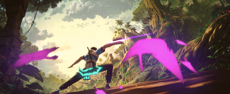 Durante a animação, o personagem vai adquirindo armas dos personagens: Kassadin, Thresh, Xayah, Galio, Caitlyn e Jarvan pic.twitter.com/bfSxA5UgsS