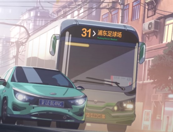 No letreiro do ônibus está escrito “Pudong Football Stadium”, que é nada mais nada menos que o local que acontecerá a grande final do Worlds 2020.